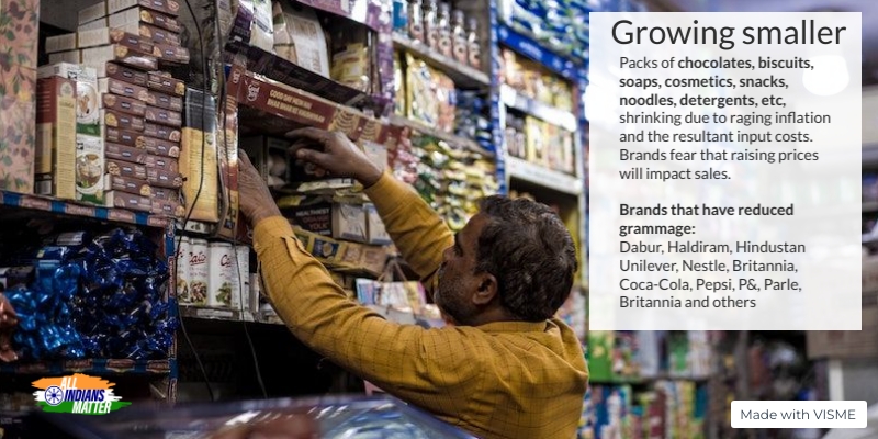 With skyrocketing inflation, input costs of products have risen. Knowing that consumers won’t buy their products if they raise prices, companies choose to reduce quality, quantity and size of their offerings in the hope that customers won’t notice. Of course the revised weight or volume is declared on the packaging, but who reads that?