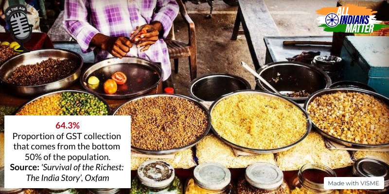 In other words, the cost of essentials is disproportionately high for the poor because of the way GST is applied. A larger percentage of their income goes in just acquiring the bare minimum required for survival whereas the rich earn so much that the cost of essentials is a mere fraction of what they earn. It’s not just an indicator of bad tax philosophy but also the wealth gap.
