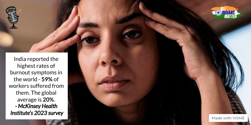 A recent survey has revealed that India tops the world in workplace burnout. According to the McKinsey Health Institute’s 2023 survey, “India respondents reported the highest rates of burnout symptoms at 59%.” The global average was 20%. It seems to be a contagion affecting all ages and companies in India. Even younger workers, aged 18 to 24, and employees of smaller companies reported high burnout rates. Indian employees also reported the highest level of workplace exhaustion at 62%, followed by Japan at 61%.